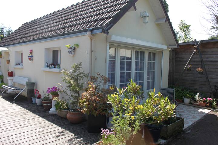 Une terrasse en bois ou en pierre vous permet d'accueillir un petit salon de jardin, voire un barbecue.
