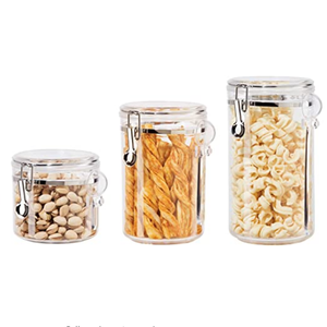 Sourcing guide for glass canister with acrylic lid: Our glass canisters with glass lids are our best selling options in large capacity glass food storage. This acrylic canister jar with lid seals air out to keep food fresh inside. With just a flip of the latch the air sealed canister is opened! Stainless steel finish complements any kitchen design.