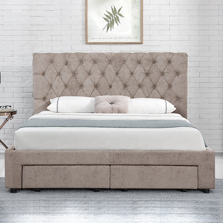 Double king size bed frame with 4 drawers storage led headboard.
